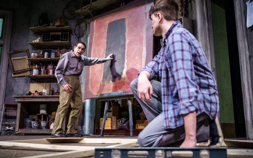 Early on, when Rothko hurls names of artists and philosophers he believes Ken should know, he doesn’t appear entirely cowed. He does a more effective job when he holds his own against Rothko after having read Nietzsche’s “Birth of Tragedy.” Ken offers his own take on Rothko’s Apollonian and Dionysian motivations, which lets Sinak play Rothko slightly more off balance.